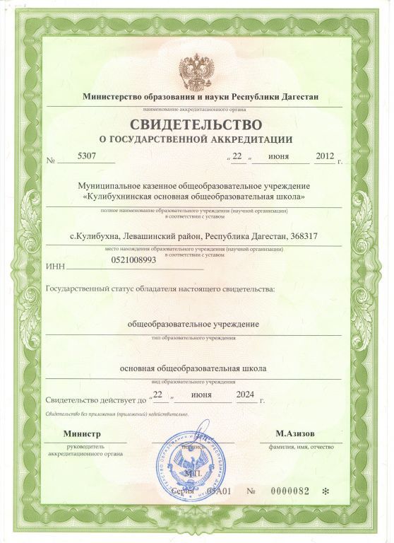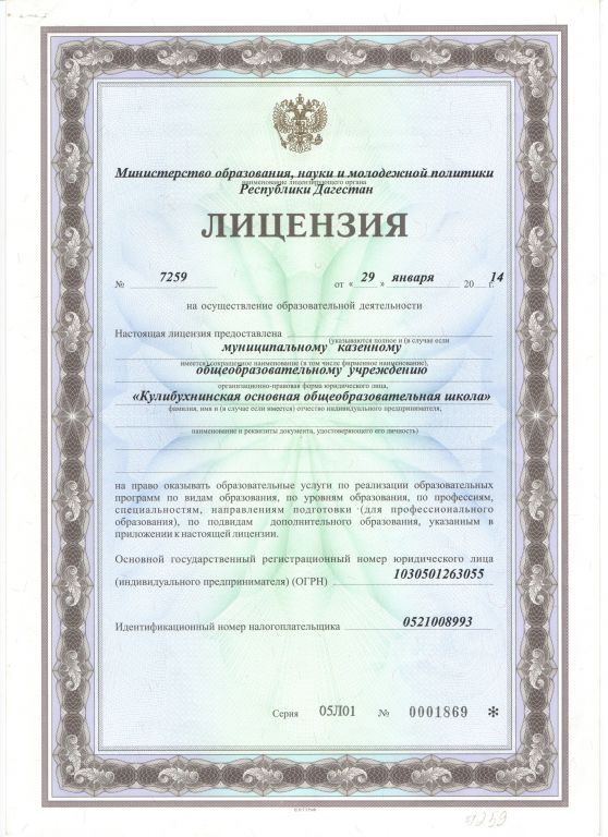 | Полное наименование образовательной организации* | Муниципальное казенное общеобразовательное учреждение "Кулибухнинская основная общеобразовательная школа" |